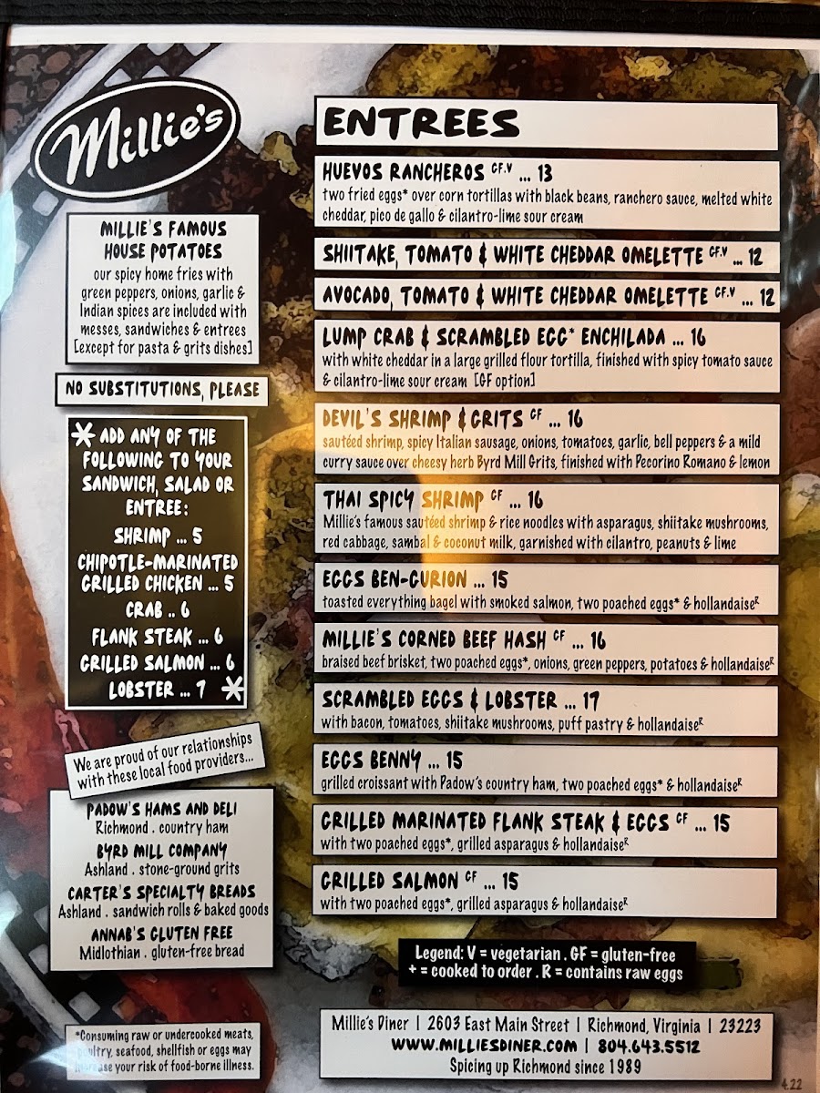 sautéed shrimp, spicy Italian sausage, onions, tomatoes, garlic, bell peppers & a mild curry sauce over cheesy herb Byrd Mill Grits, finished with Pecorino Romano & lemon